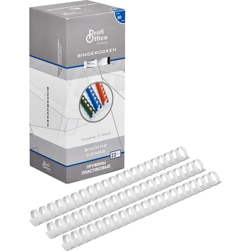 Пружины для переплета пластиковые ProfiOffice 22мм, белые 50шт/уп. (для сшивания 190 листов)
