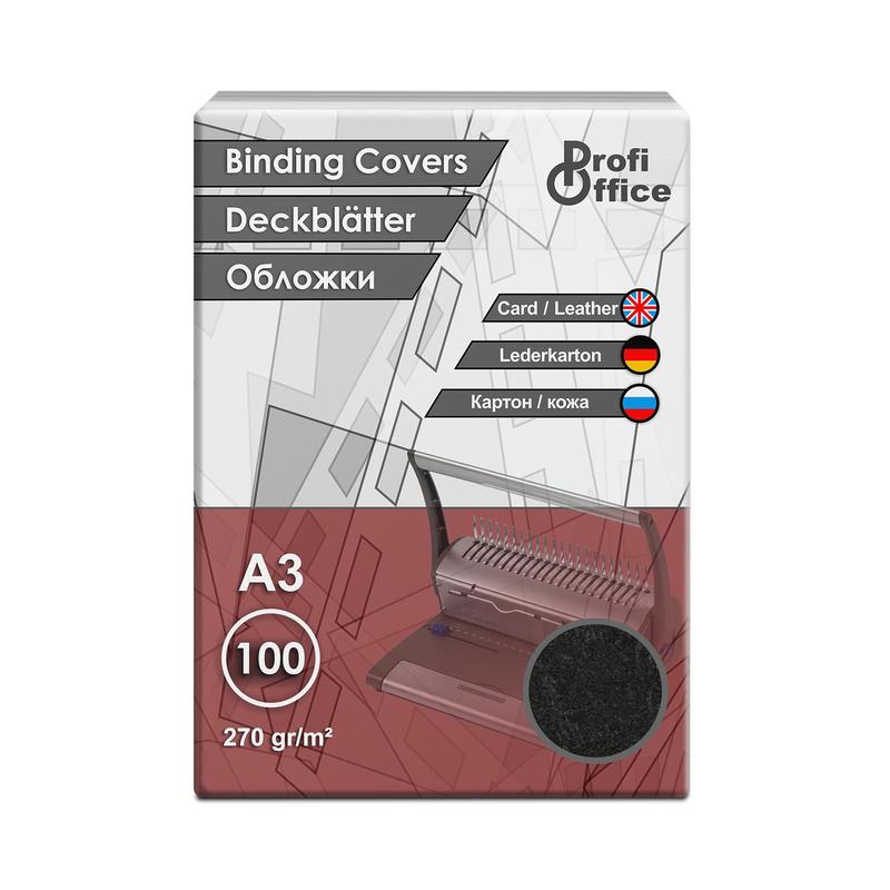 Обложки для переплета картонные ProfiOffice A3 270 г/кв.м черные текстура кожа (100 штук в упаковке)