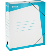 Короб архивный Комус изготовлен из гофрокартона Т23 с отделкой бирюзового цвета. Предназначен для краткосрочного хранения документации.
