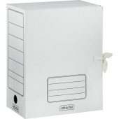 Архивная коробка Attache формата А4 выполнена из гофрокартона белого цвета. В закрытом состоянии фиксируется с помощью двух завязок. Ширина — 150 мм. Предусмотрены поля для надписей. Вместимость — до 1500 листов стандартной плотности. Круглые отверстия на корешках предназначены для удобного захвата папки как в вертикальном, так и в горизонтальном положении. Поставляется в разобранном виде. В упаковке 5 шт. Внешний размер — 254×150×323 мм. Внутренний размер — 250×146×320 мм. Гофрокартон Т21 — экологически чистый и пригодный для переработки материал.
