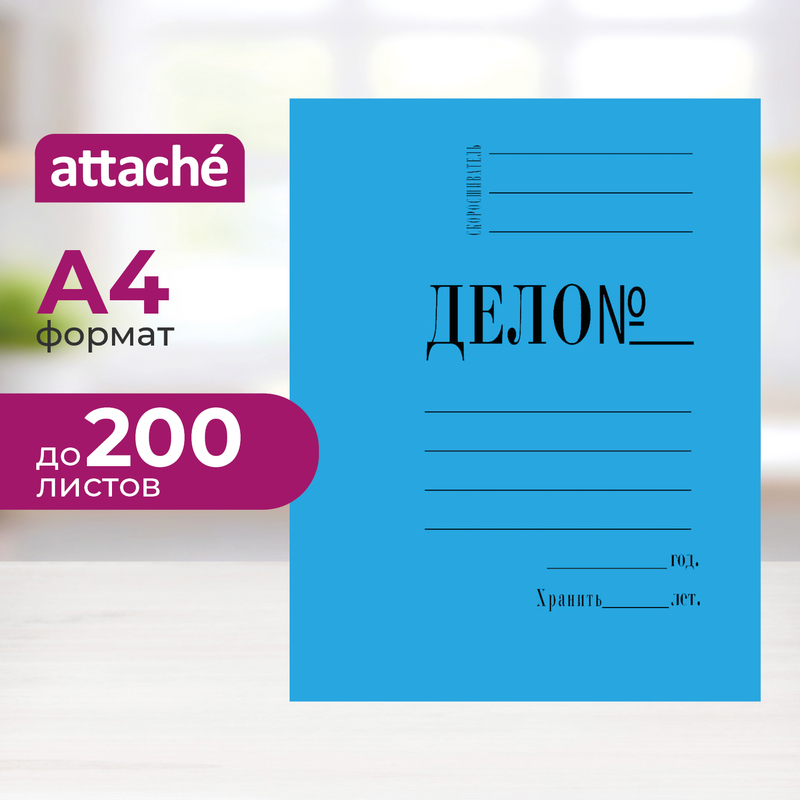 Скоросшиватель картонный Дело № А4 до 200 листов синий (плотность 360 г/кв.м)