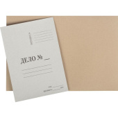 Папка-обложка Дело № формата А4 изготовлена из немелованного картона. Размер папки 220×310 мм, корешок 20 мм в 3 биговки. Белизна картона 45-55%. Без скоросшивателя и завязок. На лицевой стороне есть поля для подписывания. Поставляется по 100 штук в упаковке. Картон — экологически чистый и пригодный для переработки материал.