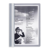 Скоросшиватель используется для хранения различного рода документации, для ведения документооборота, систематизации договоров, других важных бумаг. Папка изготовлена из мягкого пластика. Фактура - "апельсиновая корка". Толщина верхнего прозрачного листа - 130 мкм, нижнего цветного листа - 150 мкм. С прозрачной верхней обложкой. На лицевой стороне находится карман с белым бумажной полосой для указания содержания, вместимость - 100 листов стандартной плотности. Цвет - серый