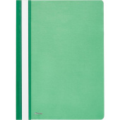 Скоросшиватель используется для хранения различного рода документации, для ведения документооборота, систематизации договоров, других важных бумаг. Папка изготовлена из гладкого пластика. Размер изделия составляет 230×309 мм, что чуть больше формата А4. Толщина верхнего прозрачного листа — 130 мкм, нижнего цветного листа — 180 мкм. С прозрачной верхней обложкой. На лицевой стороне находится карман с белым бумажной полосой для указания содержания, вместимость — 100 листов стандартной плотности. Цвет- зеленый.