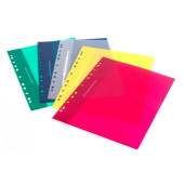 Дополнительные отверстия на корешке позволяют подшить скоросшиватель к папке. Скоросшиватель изготовлен из пластика с фактурой "песок". Толщина пластика - 180 мкм. Вместимость - 100 листов стандартной плотности. Цвет- ассорти (зеленый, синий, желтый, красный, прозрачный). Комплект из 10 штук (2 папки каждого цвета). Товар поставляется в нескольких вариантах цвета/дизайна (без возможности выбора). -