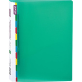 Папка изготовлена из непрозрачного пластика толщиной 0,6 мм. Ширина корешка - 17 мм, вместимость - 150 листов стандартной плотности. Цвет- зеленый