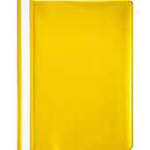 Скоросшиватель используется для хранения различного рода документации, для ведения документооборота, систематизации договоров, других важных бумаг. Папка изготовлена из мягкого пластика. Фактура — «апельсиновая корка». Толщина верхнего прозрачного листа — 130 мкм, нижнего цветного листа — 150 мкм. С прозрачной верхней обложкой. На лицевой стороне находится карман с белым бумажной полосой для указания содержания, вместимость — 100 листов стандартной плотности. Цвет — желтый