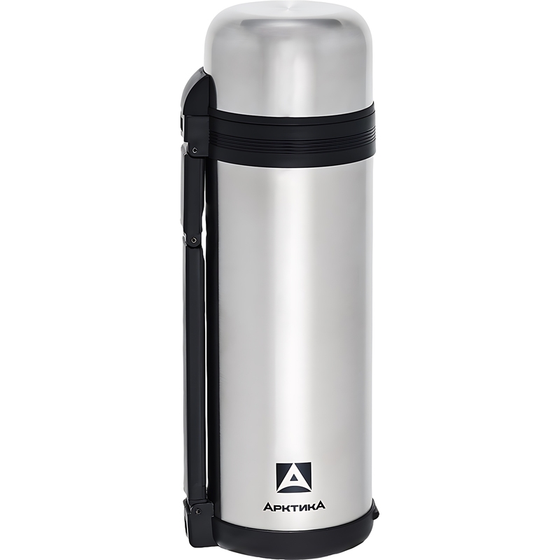 Термос для еды Арктика с ручкой 1800 мл серебристый (складная ручка, с ремешком)