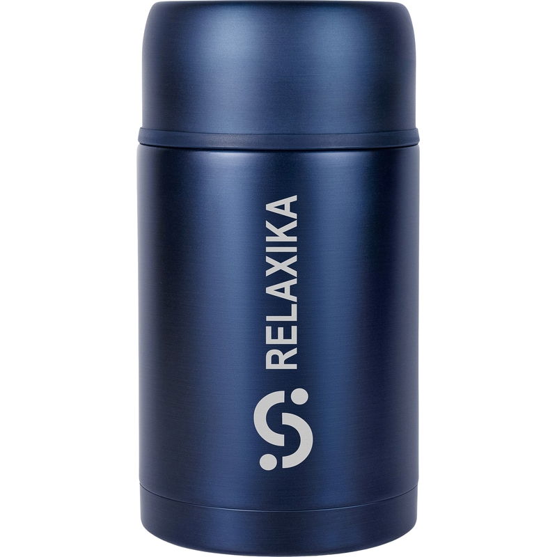 Термос для еды широкое горло Relaxika 301 (с кружкой) 1000 мл тёмно-синий