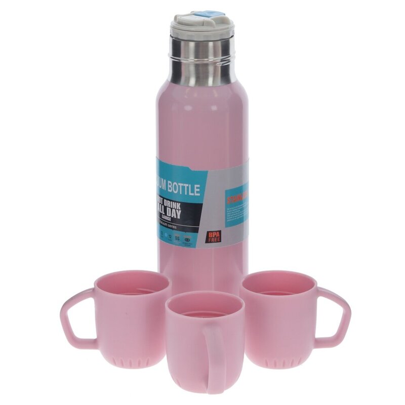Термос 600 мл розовый (+3 кружки по 100 мл)