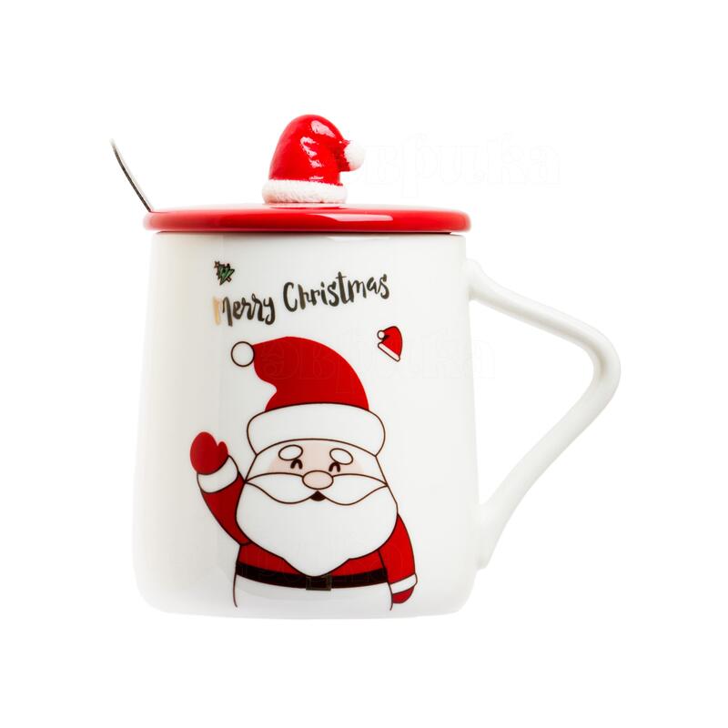 Кружка с крышкой новогодняя Эврика С новым Годом №2 Дед мороз красная
