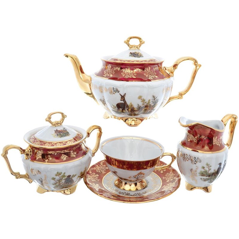 Сервиз чайный Repast Охота красная Мария-тереза на 6 персон фарфор (15 предметов)