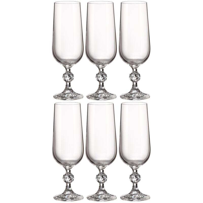 Набор бокалов для шампанского Crystal Bohemia Colibri стеклянные 220 мл (6 штук в упаковке, 91L/4S032/T/00000/220-664)