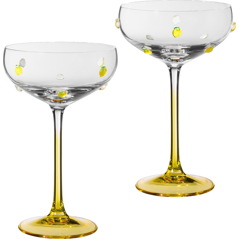 Набор креманок Lefard Fruity lemon 270 мл (2 штуки в упаковке) Набор премиальных креманок выполнен из высококачественного экологичного стекла без содержания свинца. Дизайн свежий и яркий, живой и привлекательный, запоминающийся и стильный. Креманки прекрасно подходят для коктейлей и шампанского, десертов, мороженого и фруктов. Ваши напитки заиграют новыми красками! Набор из двух премиальных креманок станет отличным подарком для ценителей изысканности и качества. Упакован в брендированную подарочную коробку. Креманки легко моются с применением мягких необразивных средств. Не рекомендуется мыть в посудомоечной машине и использовать в СВЧ-печи. Объём: 270 мл.