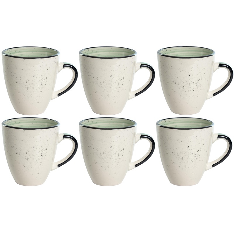 Торговая марка Elrington Тип набор кружек Цвет белый , зеленый Страна происхождения Китай Материал керамика Количество предметов в наборе 6 Объем, мл 400 Рисунок нет Особенности нет Дизайн универсальный Сезонность универсальная Возможность мытья в посудомоечной машине да Возможность использования в СВЧ-печи да Высота кружки/чашки 11 см -