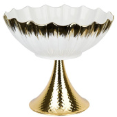 Блюдо Nouvelle Home Маршмеллоу 30 см фарфоровое. Фарфоровая фруктовница «Маршмеллоу» станет изысканным акцентом на вашем столе. Благодаря рельефной поверхности и золотому декору, она превращает любую сервировку в настоящее произведение искусства. Комбинируя благородный фарфор с металлической ножкой, изделие получилось одновременно лёгким и устойчивым. Это универсальное блюдо идеально подходит для подачи фруктов, сладостей, закусок или десертов. Оно органично впишется как в повседневную сервировку, так и в праздничное оформление стола. Диаметр 30 см и высота 26 см обеспечивают достаточное пространство для различных продуктов. Важно помнить, что использование фруктовницы в микроволновой печи и посудомоечной машине не рекомендуется. Для сохранения первоначального лоска изделия необходимо мыть его вручную, используя мягкую губку и нейтральные моющие средства. Поставляется блюдо в элегантной индивидуальной брендированной коробке размером 31×31×19 см, что делает его превосходным подарком для любого случая. Такое изделие станет достойным дополнением любой коллекции посуды и будет радовать своих владельцев долгие годы своей красотой и практичностью.