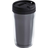 Термостакан Проект 111 Flyer 250 мл черный. Термостакан используется для хранения и транспортировки горячих и прохладительных напитков. Подойдет для использования на работе, учебе, во время поездки на природу, для занятий спортом или фитнесом. Отличный рекламоноситель с огромным полем печати — крупное полноцветное изображение можно поместить между внешним и внутренним слоями корпуса. Для этого не требуются клей или специальные инструменты — достаточно открутить резьбовое соединение в верхней части корпуса. Двухслойная конструкция из пластика внутри и снаружи. Герметичная завинчивающаяся крышка с откидным клапаном для питья. Крышку можно мыть в посудомоечной машине, корпус рекомендуем мыть вручную. Объем термокружки: 250 мл. Размеры (ВхШхГ): 14×7x7 см. Время сохранения тепла: до 3 часов. Время сохранения холода: до 3 часов.