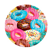 Тарелки одноразовые «Пончики» — это коллекция посуды для настоящих сладкоежек. Яркие одноразовые тарелки обазятельно станут украшением праздничного стола. Диаметр: 18 см. В упаковке 6 штук.