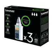 В упаковке находится три кассеты Барьер Жесткость, все кассеты Барьер подходят ко всем кувшинам Барьер. Одна кассета Барьер способна заменить несколько сотен пластиковых бутылок.