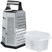 Терка TalleR 105×130 мм (TR-21906) с контейнером. Размеры: высота — 22. 9 см, основание 10. 5×13 см. Большая площадь рабочей поверхности. 6 лезвий: крупная терка, средняя терка, мелкая терка, шинковка, фигурная шинковка, шредер. Силиконовый протектор на терке предотвращает скольжение по поверхности. Съемный контейнер с крышкой обеспечивает порядок на рабочем пространстве и предохраняет продукты от обветривания. Специальная форма контейнера позволяет легко убирать его внутрь основания. Можно мыть в посудомоечной машине.