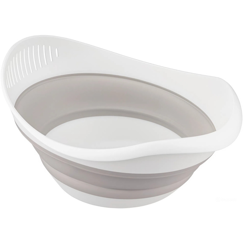 Дуршлаг-миска Phibo Zoom диаметр 25 см Многофункциональная складная миска-дуршлаг 2 в 1 позволяет не только мыть, но и процеживать фрукты, овощи, крупы. Идеальное решение для компактного хранения, благодаря складной конструкции. Занимает мало места на полке. Прекрасно сохраняет форму в разложенном виде и не деформируется под весом продуктов, не рвётся, не скользит. Легко складывается. Оптимальная логистика. Миска-дуршлаг прочно стоит на гладкой поверхности, благодаря антискользящему покрытию на дне. Дополнительная перфорация в верхней части корпуса позволяет использовать миску в качестве дуршлага. Изготовлена из безопасного пищевого сырья, подлежащего вторичной переработке.