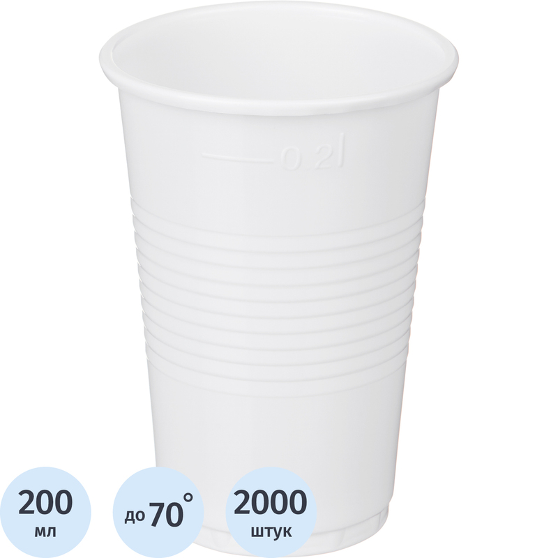 Стакан одноразовый пластиковый 200 мл белый 2000 штук в упаковке Комус Стандарт А25
