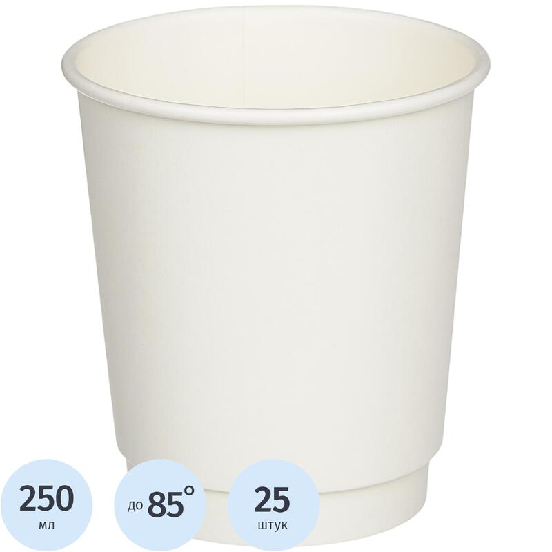 Стакан одноразовый бумажный 280/250 мл белый 25 штук в упаковке Комус