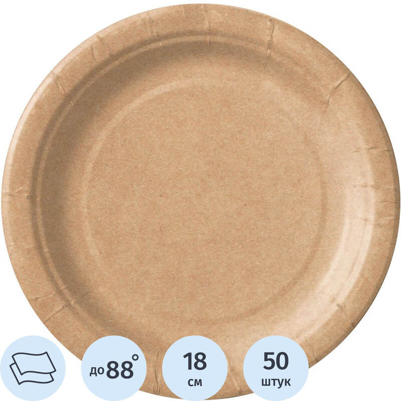 Тарелка одноразовая бумажная Комус Эконом 180 мм крафт (50 штук в упаковке)