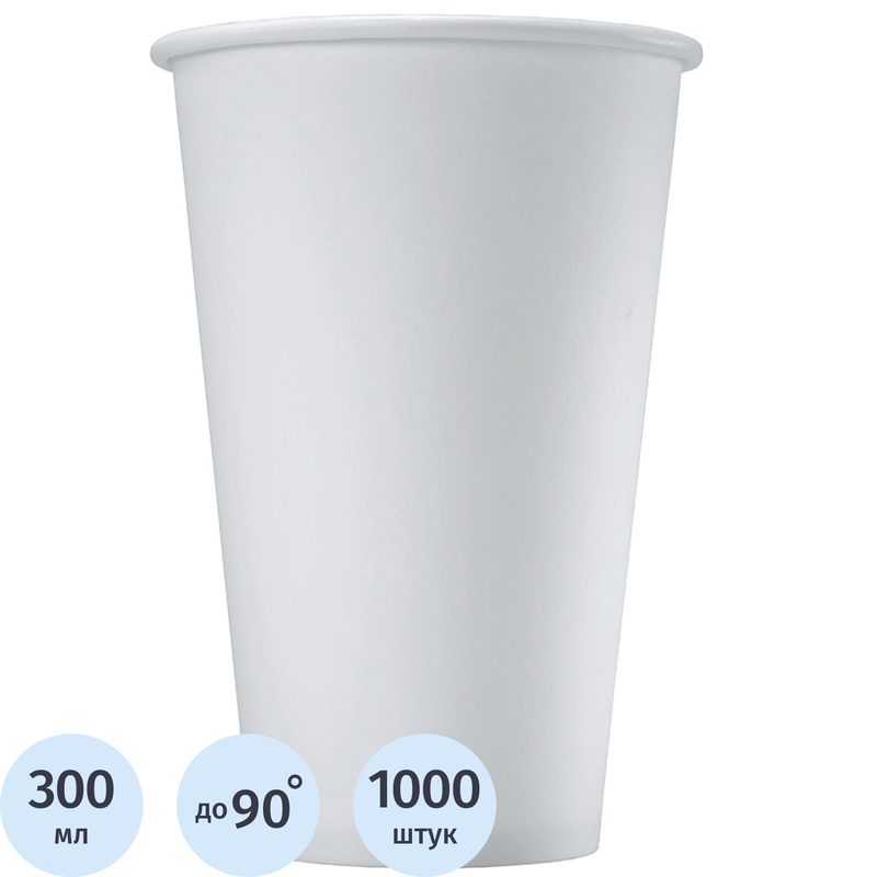 Стакан одноразовый бумажный 300/360 мл белый для вендинговых аппаратов (1000 штук в упаковке)