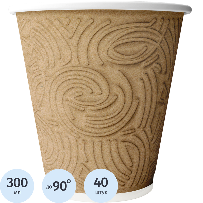 Стакан одноразовый бумажный Сканди Пакк Лабиринт 300/408 мл крафт (40 штук в упаковке)
