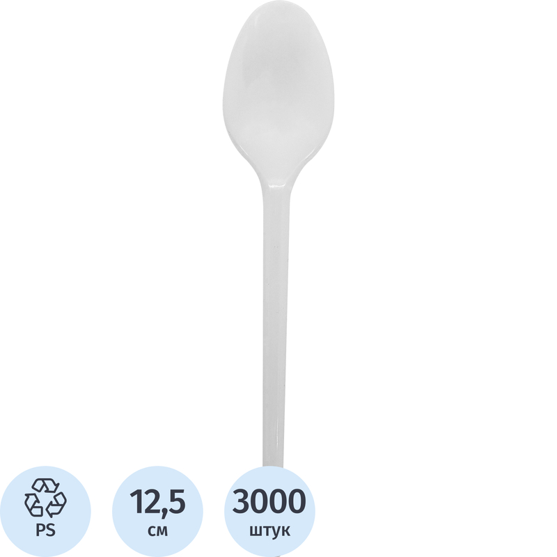 Ложка одноразовая чайная пластиковая Комус белая 125 мм (3000 штук в коробке)