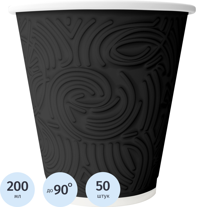 Стакан одноразовый бумажный Сканди Пакк Лабиринт 200/271 мл чёрный (50 штук в упаковке)