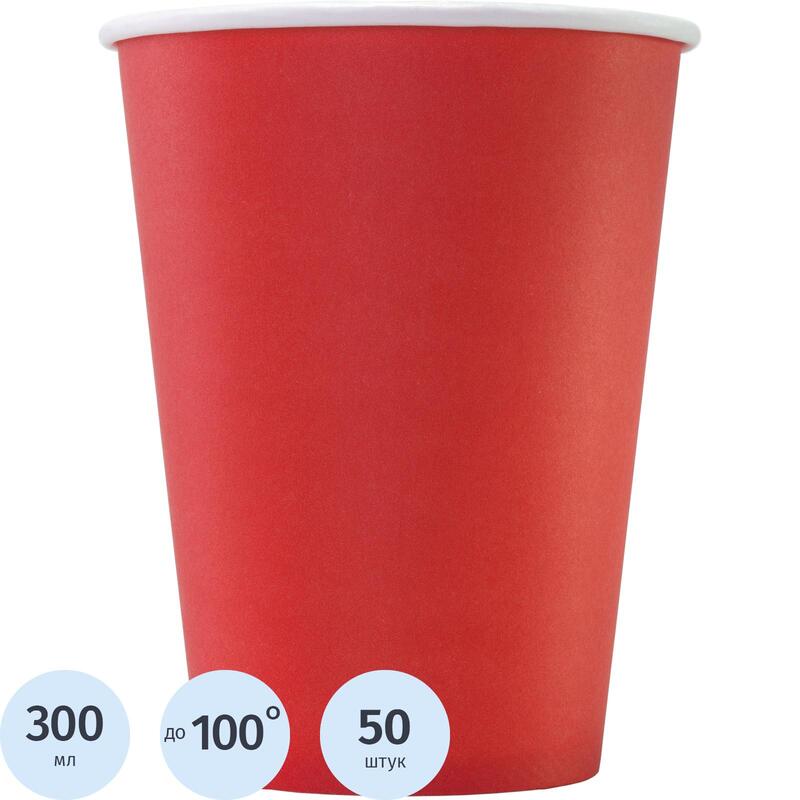Стакан одноразовый бумажный 430/300 мл красный 50 штук в упаковке Комус