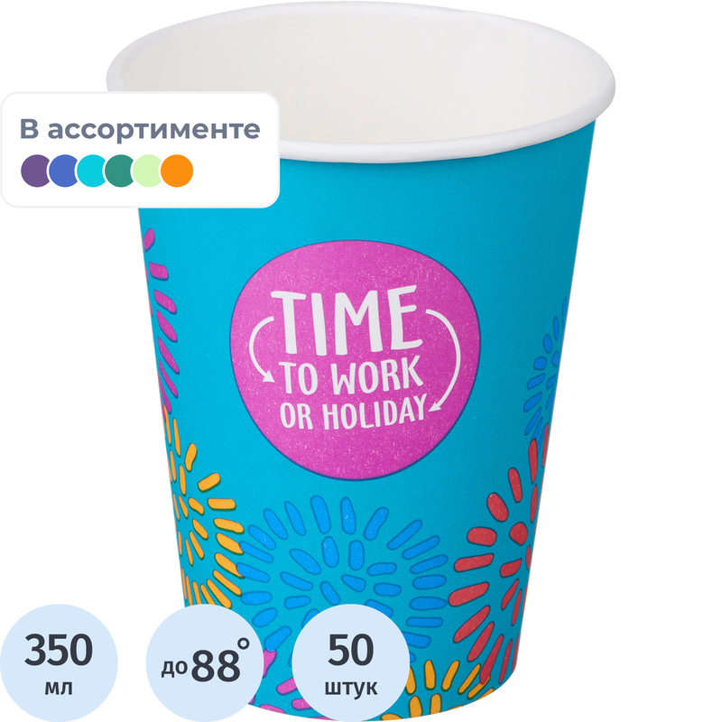 Стакан одноразовый бумажный Комус Time to work 370/350 мл (50 штук в упаковке)