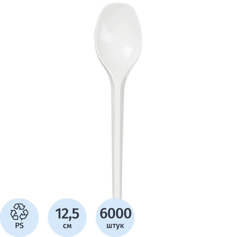 Ложка одноразовая чайная белая 125 мм 6000 штук в упаковке. Ложка чайная одноразового применения из полистирола для холодных и горячих (до 70С) пищевых продуктов. Данная продукция обладает пониженной плотностью/весом, при некорректной транспортировке или использовании возможна деформация и механические повреждения (разрыв). Ложки подходят для оформления банкетов, выездных праздников, для кафе быстрого обслуживания и т. д. Длина составляет 125 мм. Поставляются по 6000 штук в коробке. Внимание! Товар поставляется в транспортном коробе.