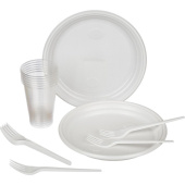 Изделия готовы к применению без предварительного промывания водой, не подходят для разогрева еды в микроволновой печи. Набор изготовлен из качественного полипропилена (PP5) и полистирола (PS6).