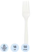 Вилка одноразовая Green Mystery белая 180 мм 50 штук в упаковке. Одноразовая вилка изготовлена из кукурузного крахмала и является биоразлагаемой, то есть после использования не наносит вред окружающей среде. Предназначена для холодных и горячих пищевых продуктов (до 75 °С). Может использоваться на пикниках, а также в кафе, ресторанах фастфуда, столовых и доставках готовых блюд. В упаковке — 50 штук. Длина 180 мм. Производитель изменил форму вилки и могут приходить вилки с небольшим отличием в дизайне. Цвет изделия может иметь отличия в зависимости от партии товара.