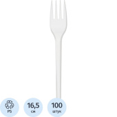 Вилка одноразовая Комус Стандарт белая 165 мм 100 штук в упаковке.