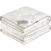 Одеяло евро макси Cassia «Айлин» 220×240 см стёганое с кантом белое Стёганое одеяло от бренда Cassia имеет чехол из 50% хлопка и 50% вискозного шёлка; жаккардовое плетение с цветочным орнаментом; наполнитель плотностью 240 г/кв. м из 100% микрогеля Airsoft. Микрогель Airsoft — инновационный наполнитель, который отличается формоустойчивостью и долговечностью, не вызывает аллергии. Особая конструкция этого полого внутри волокна создаёт объём и воздушность, которые сохраняются на протяжении всего срока службы изделия. Дополнительный объём и особую упругость одеялу придаёт вставка из специальной ткани, вшитая по периметру изделия, которая служит пружинящим элементом и способствует отличному воздухообмену. Жаккард — достаточно плотный материал из натурального хлопка и вискозы жаккардового переплетения, который обладает лёгким блеском и объёмным рисунком. Изделие на основе вискозного волокна — универсальный всесезонный вариант, который обладает антистатическими и антибактериальными свойствами. Одеяло легко впишется в интерьер любой комнаты, будь то взрослая или детская комната вашей квартиры, дома или дачи. Упаковка: сумка ПВХ. Внимание! Перед первым использованием обязательна стирка!