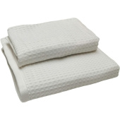 Набор полотенец вафельных 2 штуки 50×80 см/70×130 см 290 г/кв.м молочный Вафельные полотенца изготовлены из 100% натурального органического хлопка, мягкие и приятные на ощупь, прекрасно впитывают влагу, быстро сохнут, сохраняют цвет после многочисленных стирок. Особенности данной коллекции: увеличенная плотность вафельного полотна 290 г/кв.м и укрупнённая ячейка 13×10 мм специальной конструкции плетения для придания полотну необычайной мягкости. Однотонные полотенца популярных цветов будут сочетаться с любым интерьером. Состав ткани: 100% хлопок. Плотность: 290 г/кв.м. Размеры полотенец в наборе: 50×80 см, 70×130 см. Расцветка товара может отличаться от изображения на сайте. Внимание! Перед первым использованием обязательна стирка!