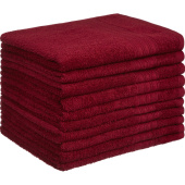 Полотенце махровое Luscan 50×90 см 400 г/кв.м бордовое 10 штук в упаковке. Комплект махровых полотенец Luscan размером 50×90 см, изготовленных из 100% хлопка. Мягкие полотенца Luscan отлично впитывают влагу и быстро сохнут. Хлопок идеален для ванной комнаты — хорошо пропускает воздух, гигроскопичен. Полотенца надолго сохраняют цвет и форму, не теряя первоначальный вид. Ближе к краю полотенца расположен лаконичный бордюр. Махровые полотенца практичны в применении — их удобно использовать как в домашних целях, так и взять с собой в спортзал, в бассейн или в баню. Размер полотенца: 50×90 см. Состав ткани: 100% хлопок. Плотность: 400 г/кв.м. Цвет: бордовый. Рекомендации по уходу: стирать полотенце в стандартных режимах с максимальным набором воды при температуре не более 40°C. Используйте жидкие моющие средства для деликатной стирки. Упаковка: пакет. В комплект входят десять полотенец. Внимание! Перед использованием обязательна стирка!