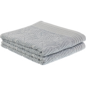 Набор полотенец махровых Комус Веттерн 50x80 см 500 г/кв.м голубой (2 штуки в упаковке) Набор махровых полотенец с жаккардовым бордюром — это два изделия 50×80 см для рук и лица. Их делают из 100% хлопка. Плотность ткани — 500 г/кв.м. Полотенца впитывают воду и быстро сохнут. Цвет свежий, голубой, с бордюром. Полотенца мягкие благодаря петле 5–5,5 мм. Нить одинарная, кардная — это придаёт прочность. Цвет полотенец не тускнеет после многих стирок. Полотенца остаются крепкими при частом использовании. Внимание! Перед первым использованием обязательна стирка! Изображение на сайте может отличаться от внешнего вида товара.