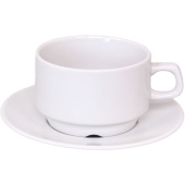 Чайная пара Дулевский фарфоровый завод фарфоровая 250 мл (93842). Чайная пара 250 мл изготовлена отечественным производителем — Дулевским фарфоровым заводом, без декора. Благодаря прочному материалу служит долго, сохраняя идеально гладкую поверхность. Можно использовать как для горячих, так и для холодных напитков. Имеет удобную ручку, которая позволяет легко удерживать ее в руке. Подходит для мытья в посудомоечной машине, разогрева жидкости в микроволновой печи. Лаконичная форма, особенность данной модели — возможность компактного хранения чашек стопкой — штабелированием. Чашка: объем 250 мл, высота 6. 1 см, диаметр 9. 2 см. Блюдце: диаметр 15 см. Поставляется в картонной коробке по 12 пар, всего 24 предмета. Размер упаковки: 230×230×295 мм. Внимание! Товар поставляется в транспортном коробе. В соответствии с ГОСТ на изделиях допускается наличие незаглазурованного края. Для изделий первого сорта максимальная ширина такого края не должна превышать 2 мм, для изделий второго сорта — 3 мм. Допустимо отклонение процента белизны в пределах 58%