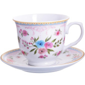 Сервиз состоит из 12 предметов:6-ти чашек объемом 220 мл и6-ти блюдец размером 13.5×13.5 см, упакованных в подарочную коробку.