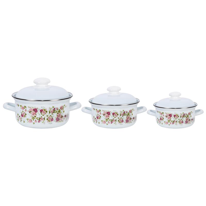 Набор кастрюль Лысьвенские эмали Китайская Роза эмалированная сталь 3 штуки (1.5 л, 2 л, 3 л)