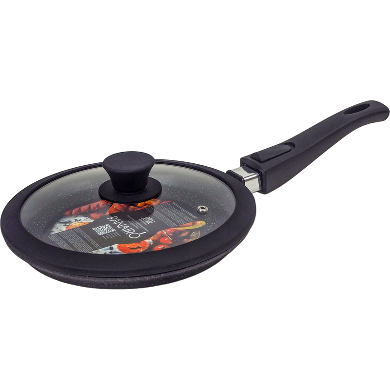Сковорода блинная Panairo Harfe Black 22 см с антипригарным покрытием/с крышкой/со съёмной ручкой