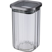 Банка для сыпучих продуктов Regent inox Desco стеклянная 1.2 л Банки квадратной формы позволяют компактно организовать хранение и эффективно задействовать пространство в ящиках и шкафах. Материал: боросиликатное стекло, нержавеющая сталь, АБС-пластик и силикон. Высота: 18 см. Ёмкость: 1200 мл.