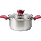 Кастрюля выполнена из высококачественной нержавеющей стали марки 18/10. Капсулированное дно. Полировка внешняя — матовая, внутренняя — матовая. Крышка из жаропрочного стекла с отверстием для выхода пара. Есть отметки литража. Особая форма ручки на крышке позволяет использовать ее как подставку для столовых и поварских приборов. Бакелитовые ненагревающиеся ручки с soft-touch покрытием.