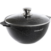 Казан алюминиевый Мечта Гранит black Induction Pro 54802И 4.5 л черный. Казан индукционный со стеклянной крышкой объемом 4,5 л. серии Гранит black Induction Pro. Толщина дна — 7 мм, стенок — 3,6 мм, высота — 140 мм, диаметр — 26 см, объем — 4,5 л. Внешнее и внутреннее трехслойное антипригарное покрытие повышенной стойкости, разработанное фирмой Weilburger Coatings GmbH. Индукционная антипригарная посуда серии Гранит black Induction обладает рядом неоспоримых преимуществ, среди которых — сплошной индукционный диск (без перфорации). За счет увеличения площади диска увеличивается скорость и качество нагрева, снижается потребление электричества. Дно имеет большую толщину, что исключает деформацию при быстром и сильном нагревании. Индукционный диск впаян в корпус. В отличие от метода прессования перфорированного дна это обеспечивает лучший контакт с поверхностью, положительно влияет на скорость и равномерность нагрева. На дно нанесено защитное антипригарное покрытие. Это устраняет угрозу царапания плит. Стеклянная крышка в комплекте. Посуда подходит для всех типов плит, включая индукционные. Можно мыть в посудомоечной машине.