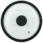 Крышка изготовлена из стекла и снабжена эргономичной ручкой и силиконовым ободом, благодаря чему она максимально плотно прилегает к краям посуды. Ее удобно и приятно держать в руке.